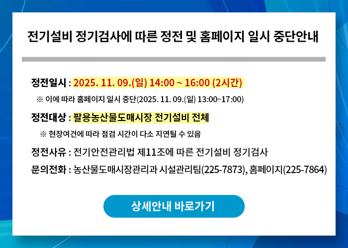 ÆÈ¿ë³ó»ê¹°µµ¸Å½ÃÀå Àü±â¼³ºñ Á¤±â°Ë»ç¿¡ ..